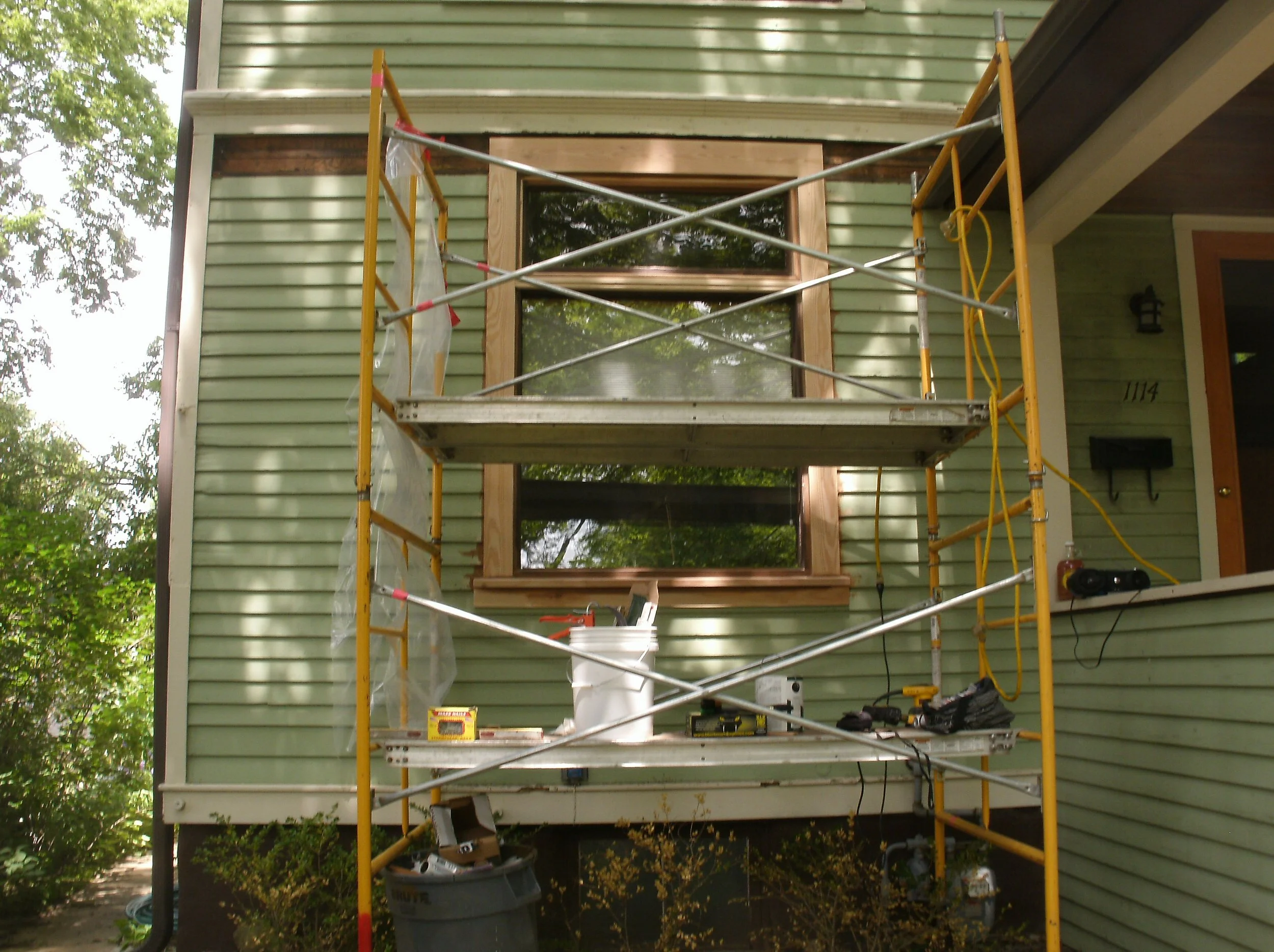 This was really fun. This wonderful house, a great old Victorian set back far from the street needed much help. The first project was repairing 20+ feet of eaves where squirrels eaten away the wood to make themselves a highway to the great indoors. I have no decent photographs of this phase the work. The next year I started on the “Great Drip Edge Replacement Project.” Across the back of the house, I replaced the drip edge, rotted sheathing, trim and siding. I then painted all new and adjacent wood. The next year I re-trimmed around the picture window on the front of the house and replaced the drip edge, siding and trim as necessary and painted all new and adjacent wood. The next year I proceeded to the West side of the house doing the same replacing the drip edge and siding and trim as necessary. I painted the new and adjacent wood. The next year I proceeded to the East side of the house and replaced drip edge, trim and siding as necessary and then painted.